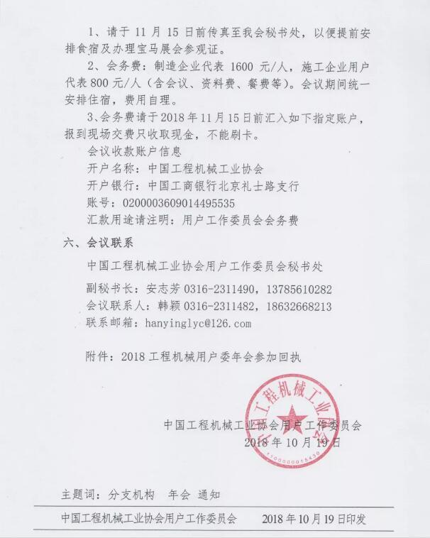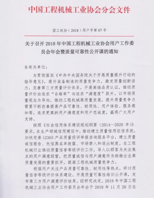 中國工程機(jī)械工業(yè)協(xié)會(huì)用戶工作委員會(huì)關(guān)于召開2018年年會(huì)暨質(zhì)量可靠性公開課的通知